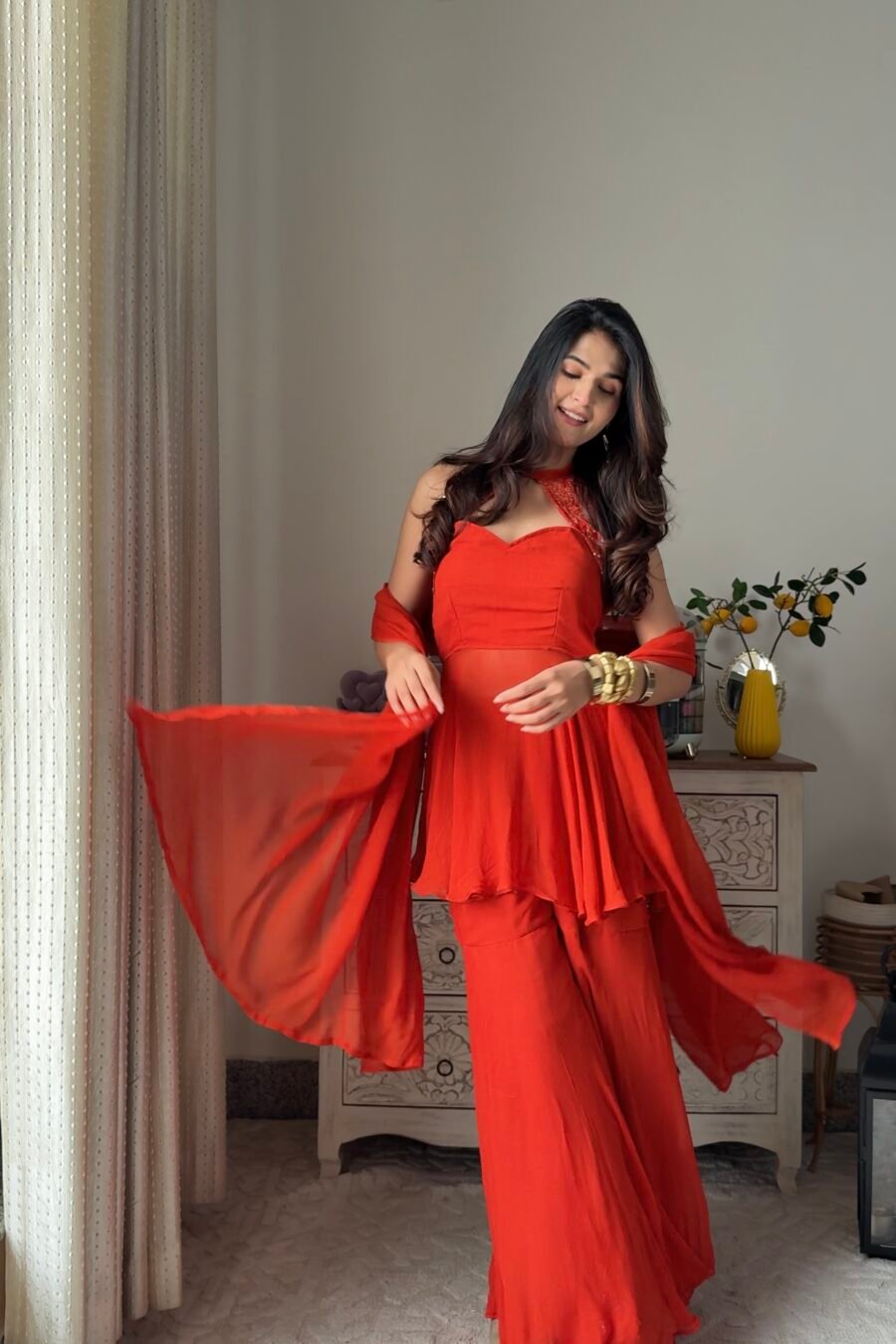 Embroidered Tube Backless Kurta With Sharara And Dupatta
