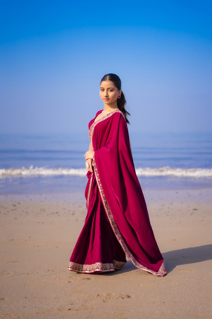 velvet Saree With Unstitched Blouse