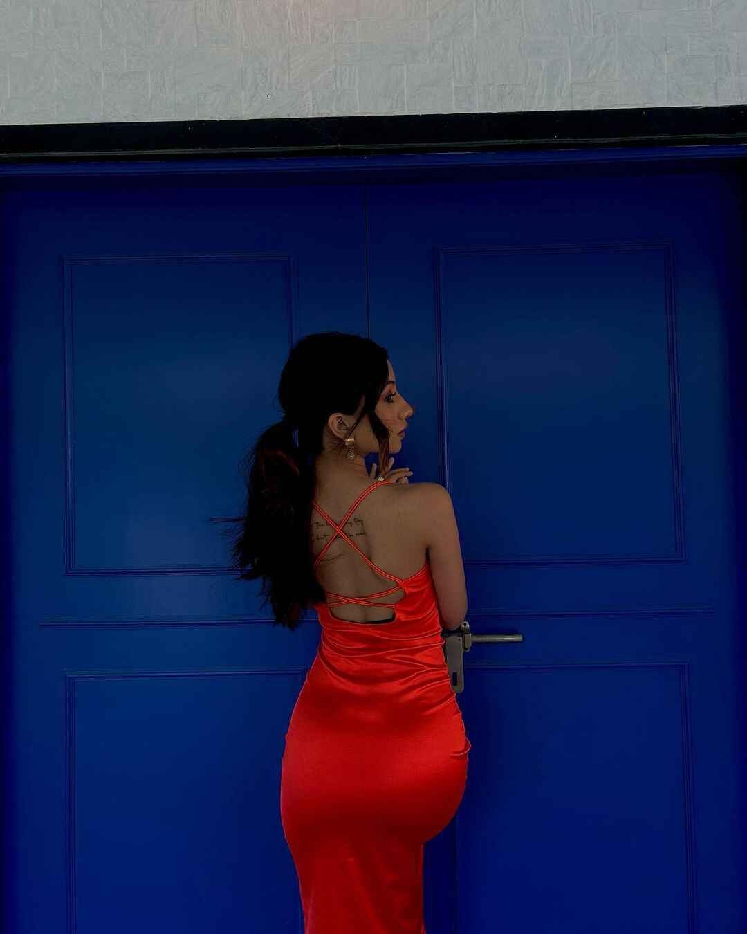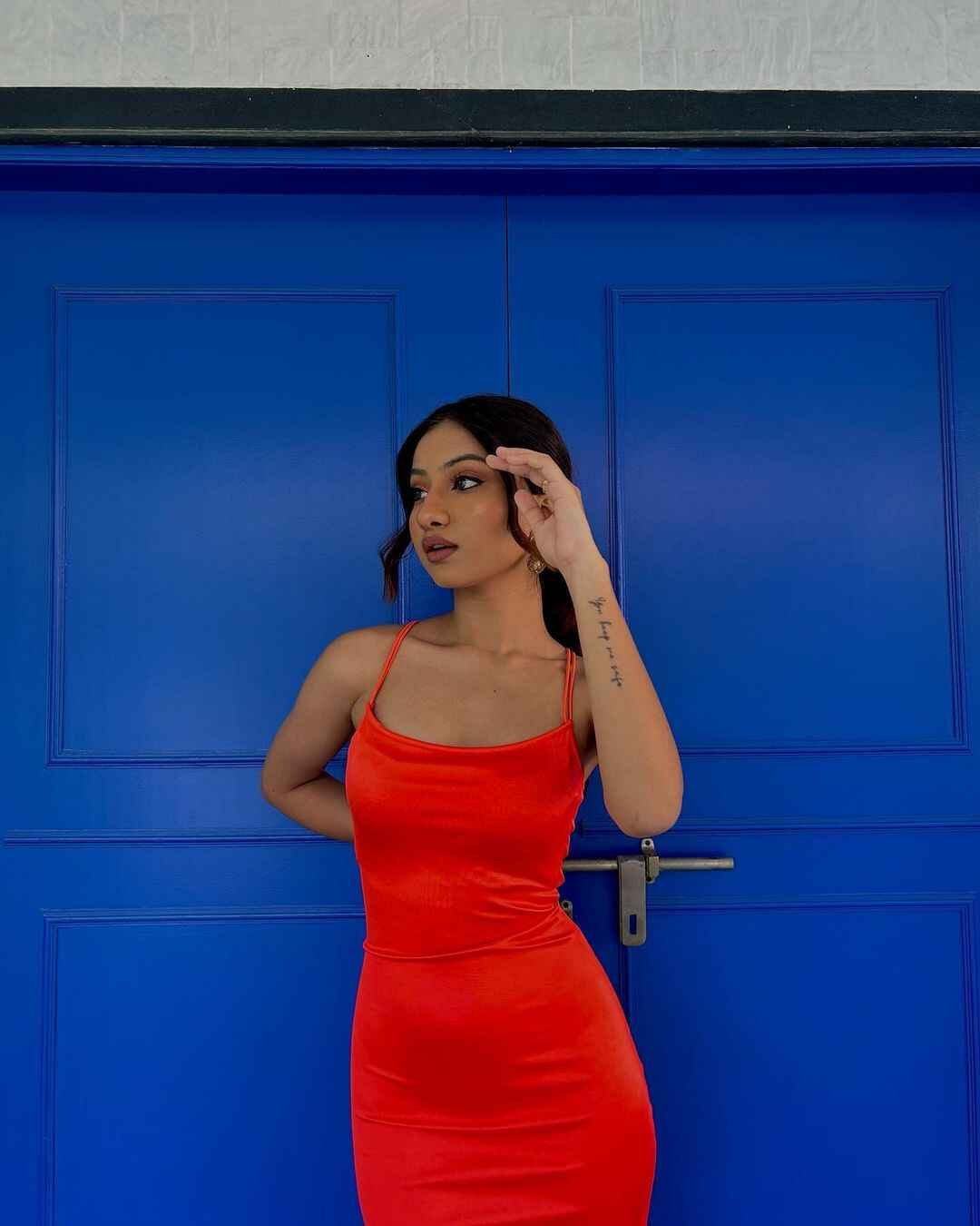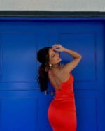 • Style Tips: Pair the dress with some strappy heels or elegant pumps to add some height and glamour to the look.Opt for a clutch bag and some elegant bracelets.It can be styled with simple accessories like dangly earrings, a statement bracelet, and high heels to complete the look.You could wear your hair in a sleek updo or let it flow naturally in loose waves.
